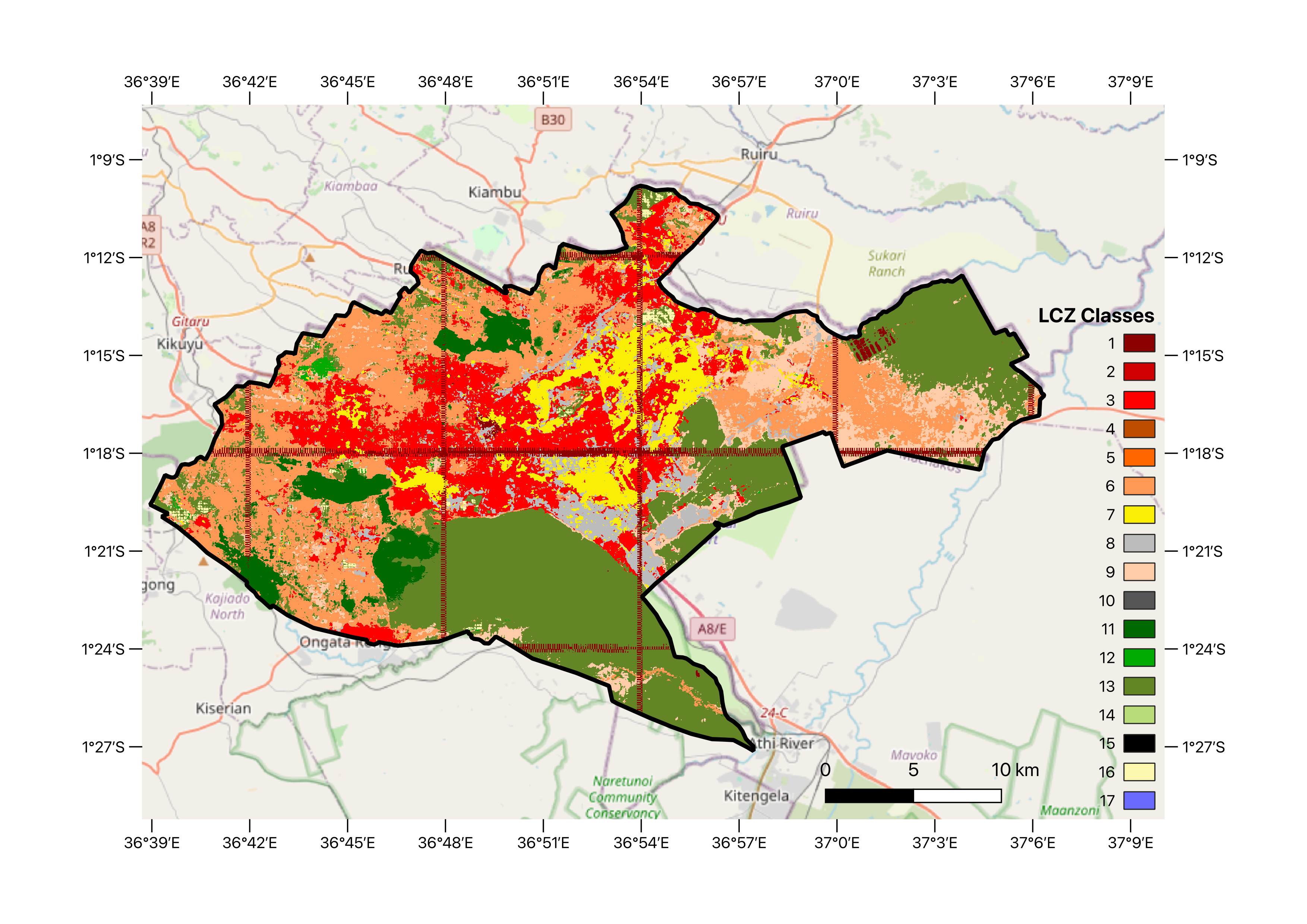 With that said, with Anil we had decided to work with Paris or Madrid. However, we had ignored on key factor: change in land use over time. (Most) major European cities have not had major changes in land use for urban expansion for the last decade, so seeing change in LCZ distribution over time was very unlikely. On the other hand, cities in Latin America and Africa have massively grown in extension so even in a 10-year span land use can vary a lot. I can talk about this from experience (see Bogotá in Google Earth). For this reason, Nairobi was an obvious choice and also because I happen to be working on a project with Saitabau Kumary on building efficiency there.
